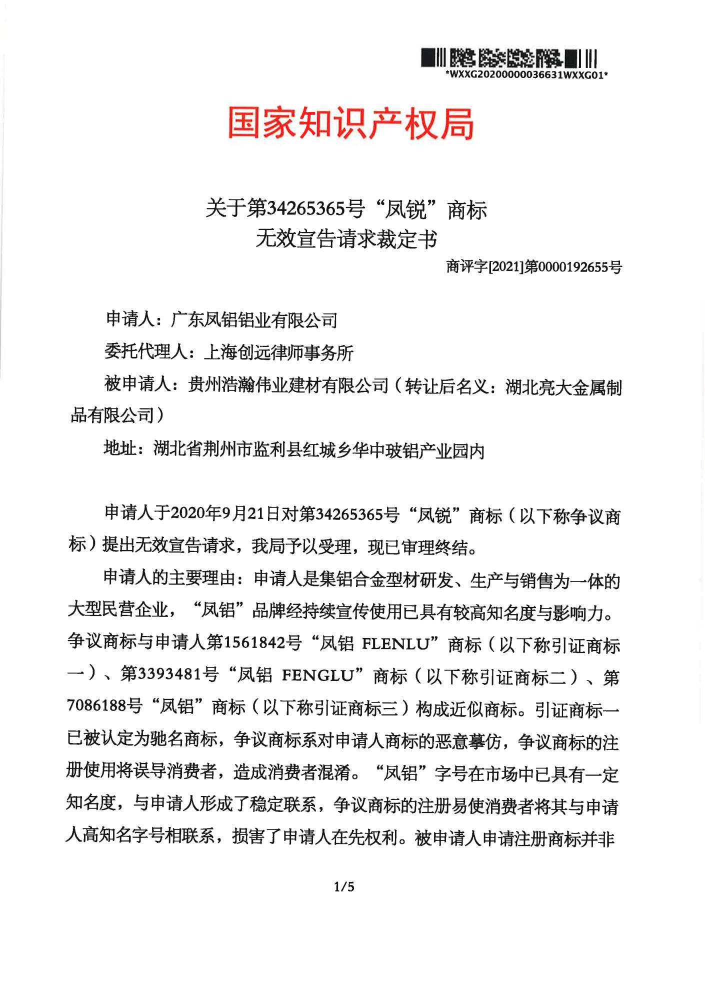吉安辉知队 | 国家知识产权局:“凤锐”商标无效