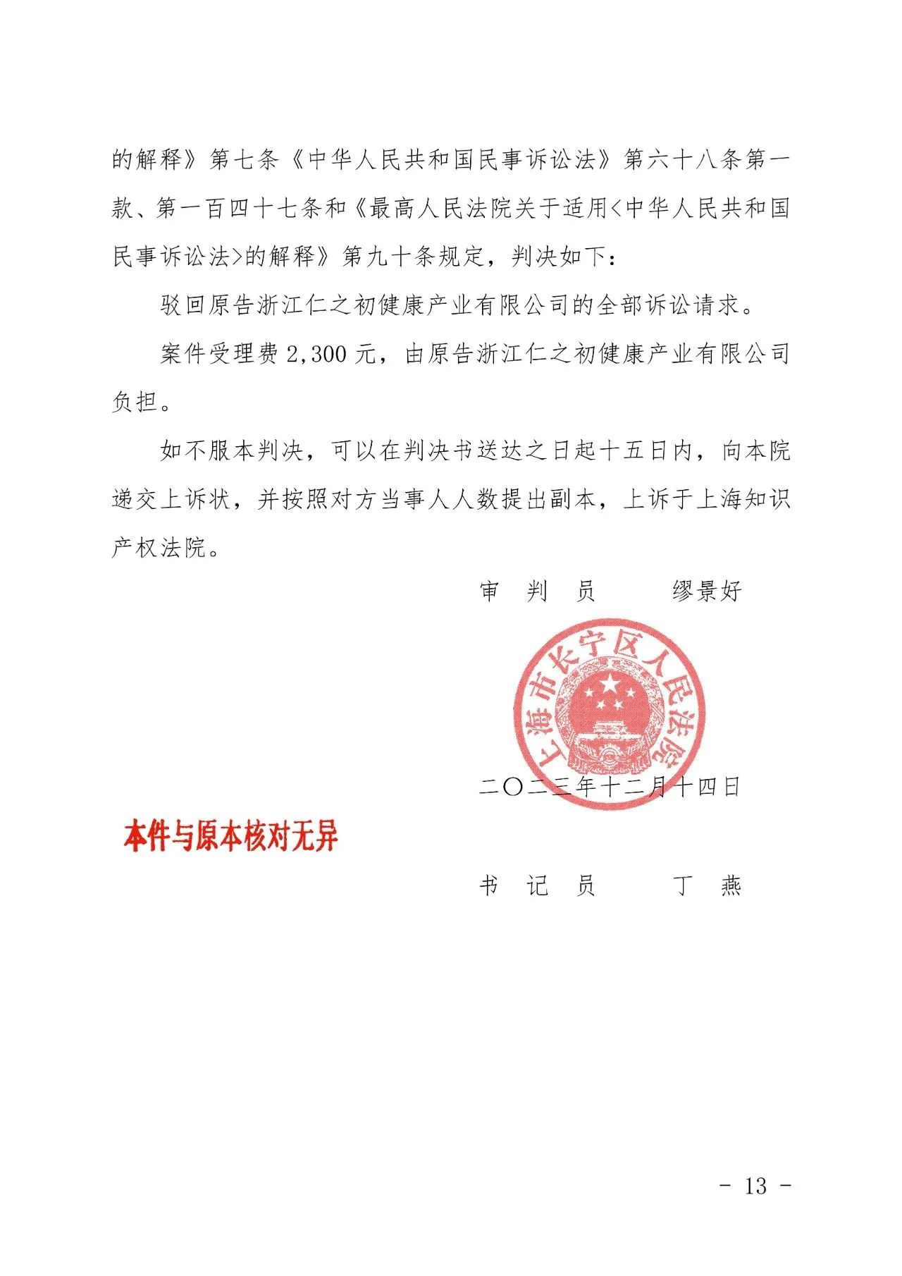 吉安辉知胜诉佳讯 | “仁之初健康”著作权及不正当竞争纠纷案,法院:驳回全部诉讼请求!